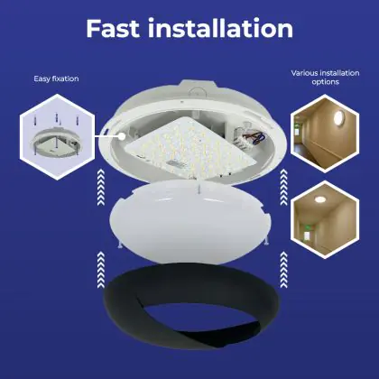 LED-Wand- und Deckenleuchte Pro V2 12/16/20W 2400lm - 830-840-865 CCT | 325mm - IP65 - 3 Stunden Notlicht + Augenlid Ring Schwarz
