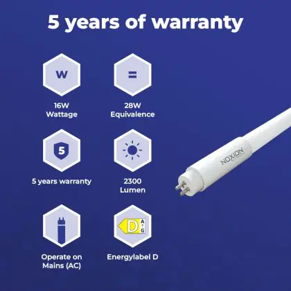 Bei der LEDtube T5 Extreme (Mains AC) High Efficiency 16W 2300lm - 830 Warmweiß | 115cm - Ersatz Für 28W handelt es sich um eine energieeffiziente LED-Röhre. Sie ersetzt Ihre konventionelle Leuchtstoffröhre mit 28W. Die Röhre ist 1149 mm lang und hat die Farbtemperatur . Die durchschnittliche Lebensdauer der LED-Röhre beläuft sich auf 50000 Stunden. Wir bieten Ihnen für dieses Produkt eine Garantie von 5 Jahre an.