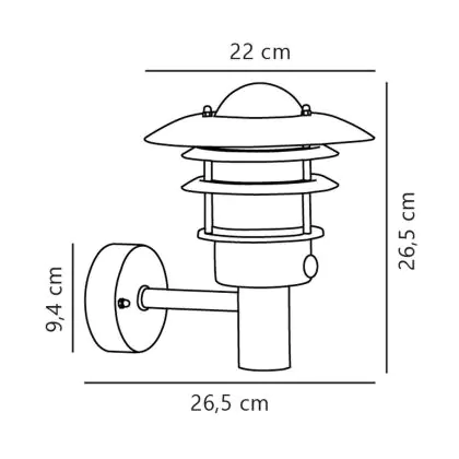 Nordlux Lønstrup 22 Wandleuchte Stahl und Glas Grau | 220mm - IP44 - Geeignet für E27 - Bewegungs- und Lichtsensor