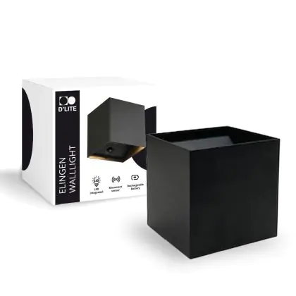 L'applique murale D'Lite de la gamme Elingen est facile à installer grâce au matériel fourni et peut être réglée instantanément selon vos besoins ! L'applique murale est munie d'un détecteur qui émet une lumière de <50 lux lorsqu'il est activé et une lumière de >200 lux lorsqu'il est désactivé. De plus, l'applique murale dispose d'une batterie de 2600 mAh qui dure jusqu'à 13 heures lorsqu'elle n'est pas branchée sur le secteur.