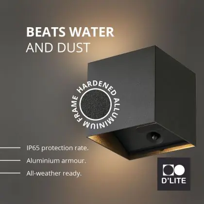 Description D'Lite Applique Murale Elingen Aluminium Noir Up & Down 2.9W 170lm - 830 Blanc Chaud | IP65 - À Piles - Détecteur De Lumière