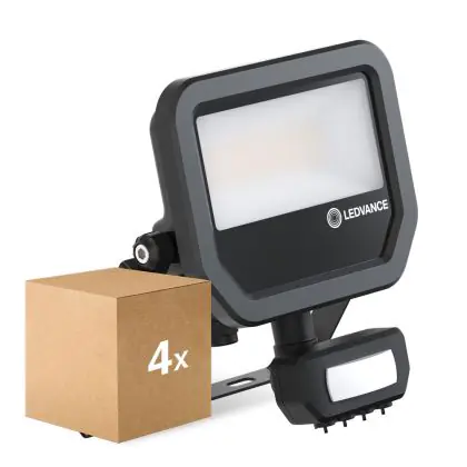 Le Lot 4x Ledvance Projecteur LED Aluminium Noir 17W 2400lm 100D - 840 | IP65 - Détecteur de Mouvement et de Lumière - Symétrique permet une économie d’énergie importante tout en conservant une excellente qualité d’éclairage. Sa technologie LED Intégré lui permet également d’avoir une très longue durée de vie pouvant aller jusqu’à 100000 heures. Ce projecteur LED est étanche, avec son indice de protection IP65 – Résistant à la poussière et à l'eau (jets d'eau) lui permettant d’être hermétique à la poussière et à l’eau. Disponible dans la couleur 4000K - Blanc Froid et un flux lumineux de 2400 Lm, ce projecteur LED est la solution idéale pour le remplacement de vos anciens projecteurs conventionnels.